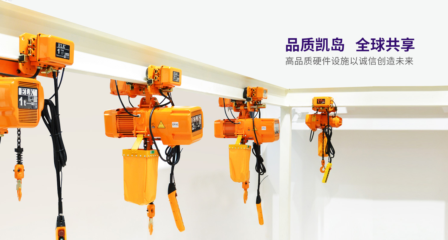 浙江凱島起重機(jī)械有限公司是一家集設(shè)計(jì)、研發(fā)、生產(chǎn)、銷售為一體的綜合性起重設(shè)備制造企業(yè)。公司生產(chǎn)的環(huán)鏈電動(dòng)葫蘆、鋼絲繩電動(dòng)葫蘆、天車專用馬達(dá)、橋門式起重機(jī)等各類型起重產(chǎn)品,汲取世界起重機(jī)行業(yè)先進(jìn)的產(chǎn)品開發(fā)、設(shè)計(jì)理念,采用大量的新技術(shù)、新材料以及進(jìn)口零部件,具有噪音低、重量輕、 結(jié)構(gòu)緊湊、技術(shù)先進(jìn)、性能優(yōu)越、操用安全簡便、易安裝維護(hù)等優(yōu)點(diǎn)。凱島產(chǎn)品廣泛應(yīng)用于機(jī)械加工、物料搬運(yùn)、模具開發(fā)、工業(yè)自動(dòng)化流水線、產(chǎn)品裝配、風(fēng)力發(fā)電等各行各業(yè)。